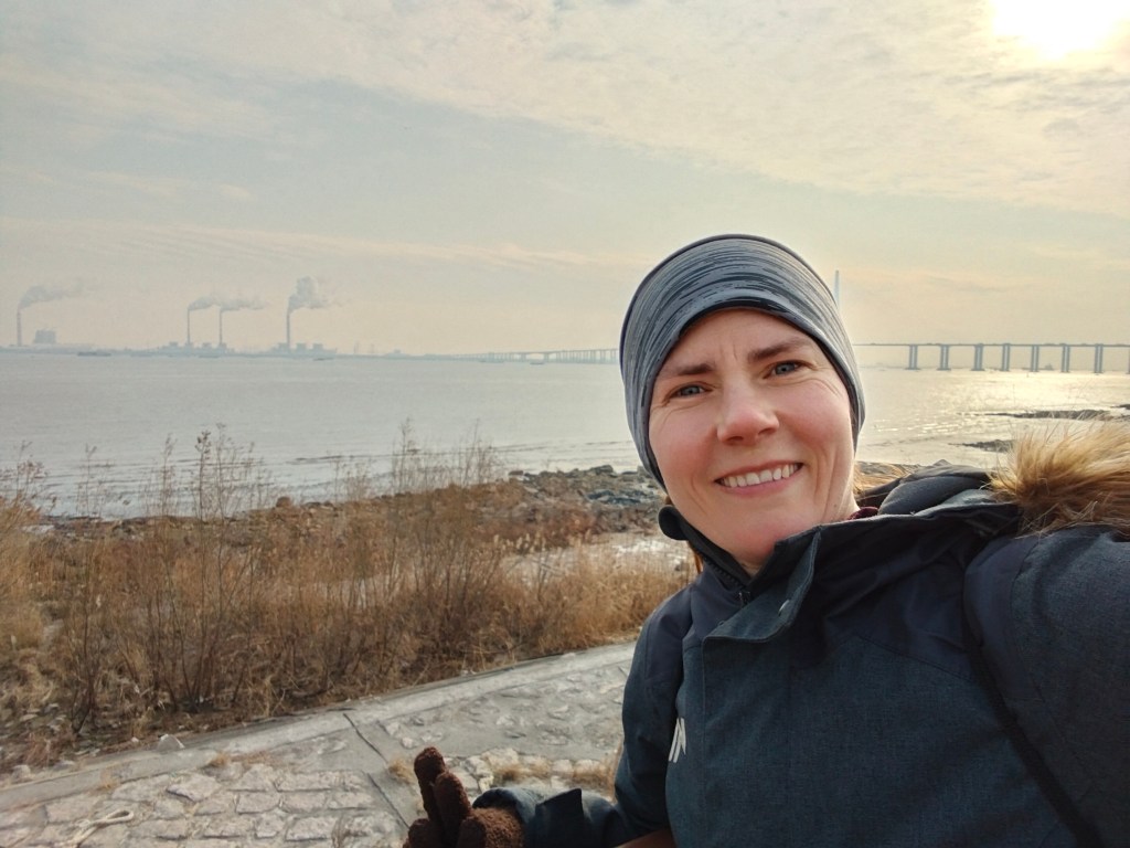 Första vägen ner var stängd av en grind och den utposterade vakten visade tydligt att jag inte fick gå in. Nästa ingång ledde till en stor byggarbetsplats. Men efter drygt 5 kilometer dök floden upp, dessutom en nybyggd fin park där solen sken och jag kunde lösa kakuro på en parkbänk.
