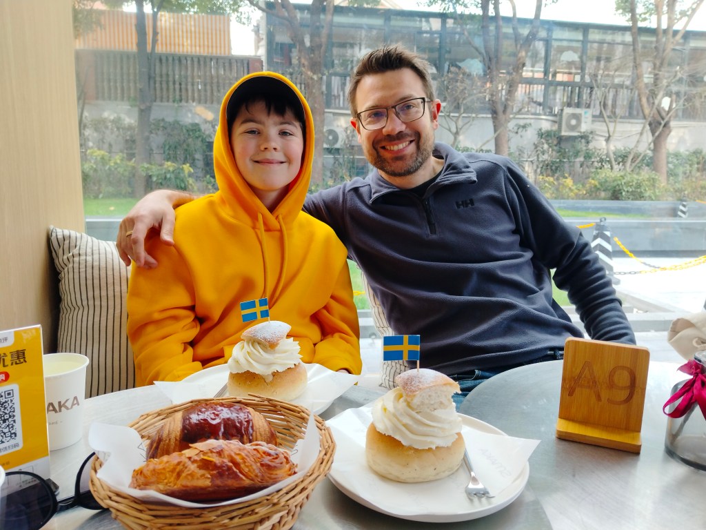 På tisdagen vankades det fettisdag, och vi hade hört talas om ett café som sålde semlor. Vi tog en tur till de franska kvarteren för ett “köttspett” till lunch och ett varsitt bakverk på caféet till efterrätt.