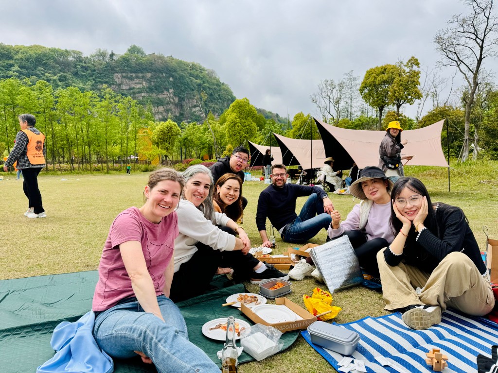 På damernas filt har jag sällskap av Gi från Brasilien, Jenny från Singapore, Apples pappa som äger en fabrik, och två mammor, April och Violin som också jobbar på skolan. Och min man såklart, gissar att ni känner igen honom.