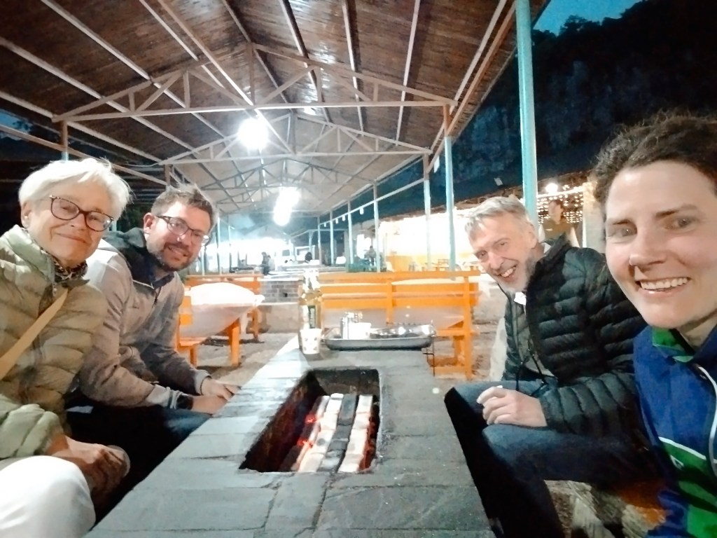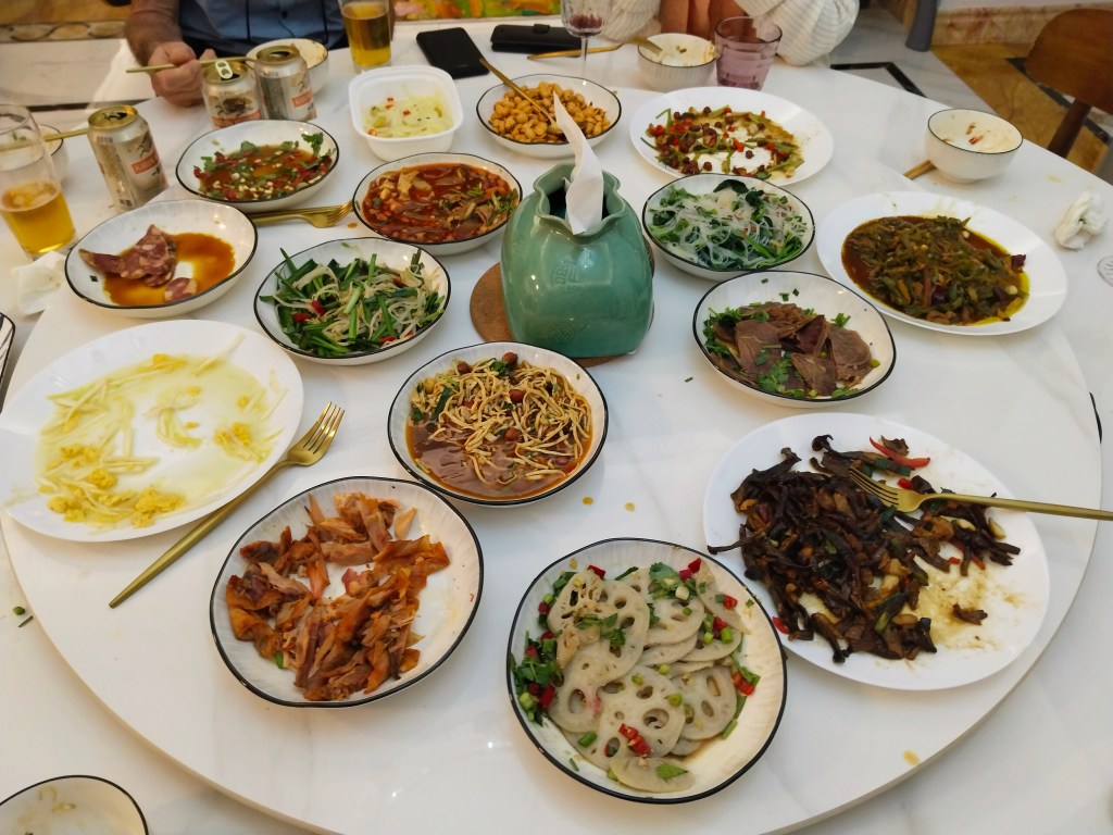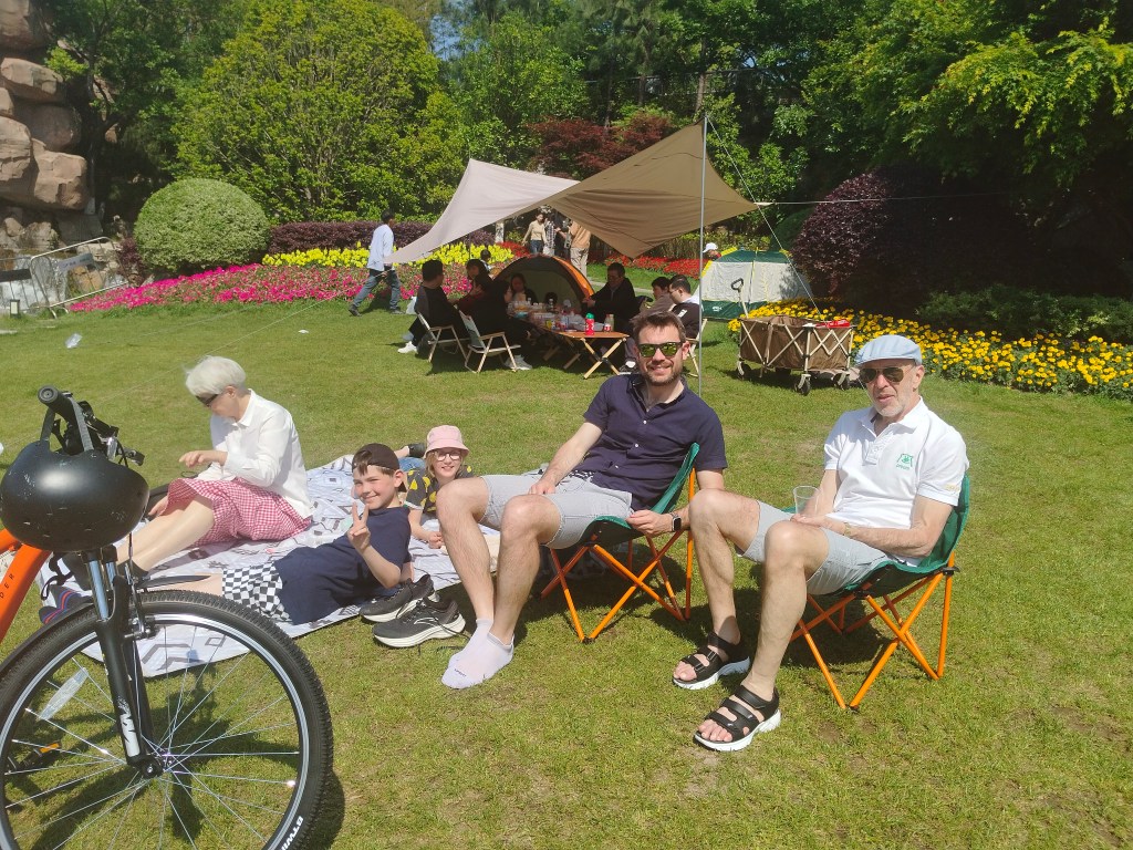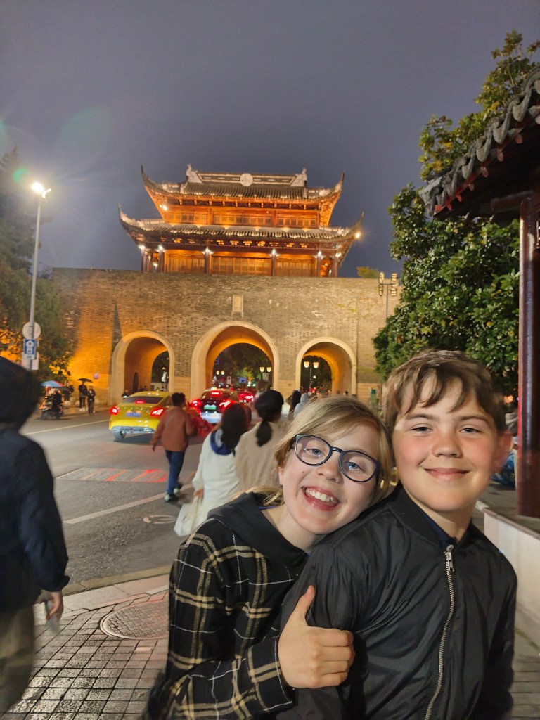 Medan vi grillade en väldans massa grillspett till middag dansade kineserna en bit därifrån runt en eld till musik med otroligt hög ljudvolym. Barnen klättrade runt i lekparken och vi klurade på vad det var för råvaror vi grillade. När vi började gnaga på speten med “nötkött” insåg vi att det nog inte kunde vara ko. Min bästa gissning är nog kycklinghjärta.
