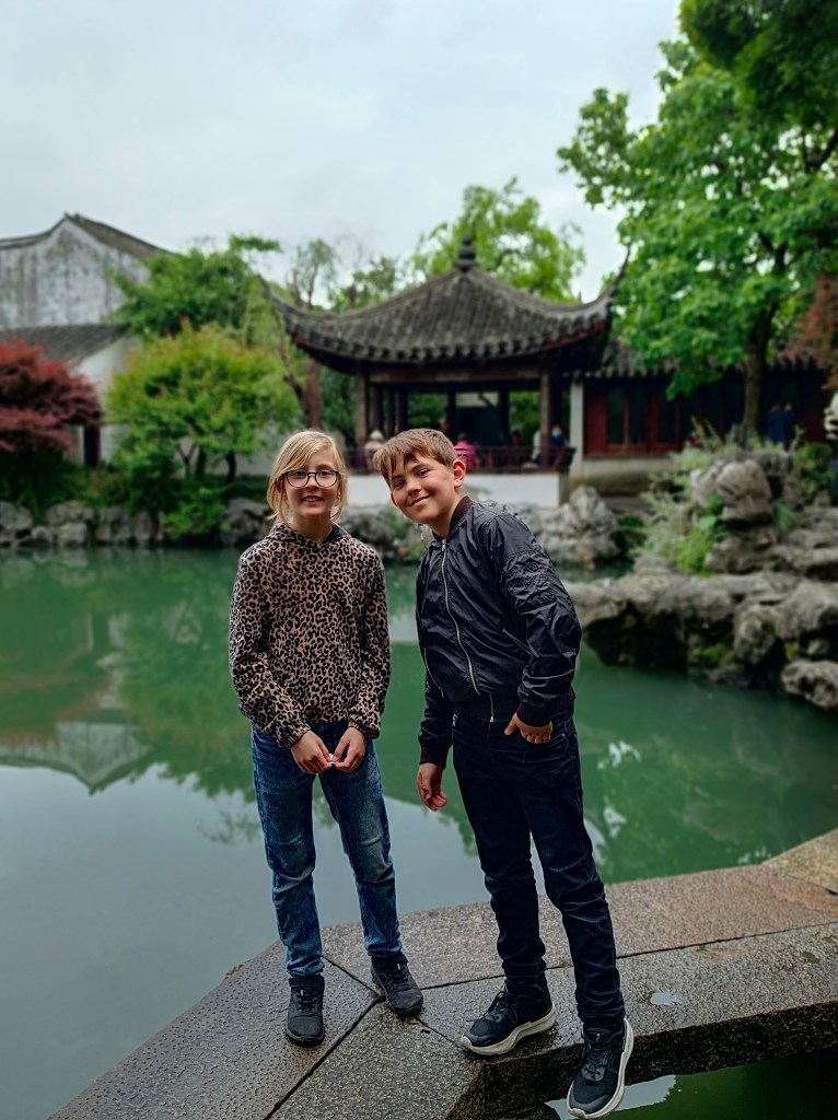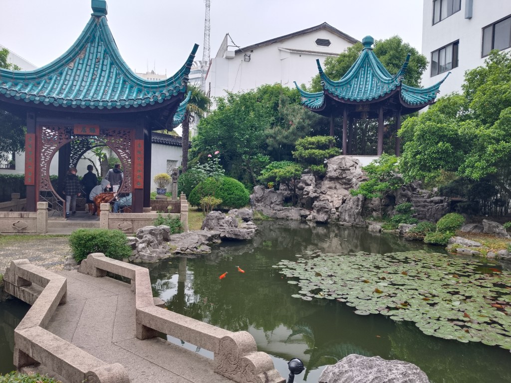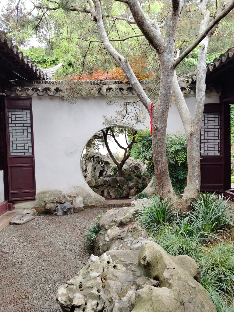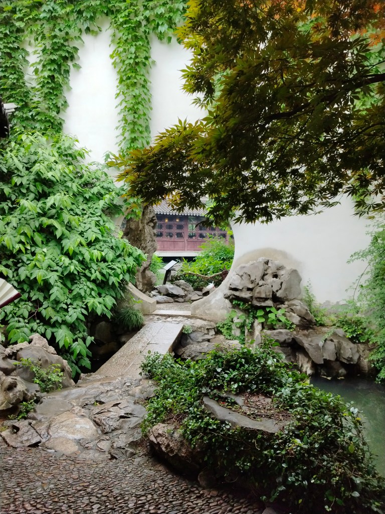 De olika dynastierna som styrt landet genom århundradena har lämnat spår i arkitektur, kultur, och en massa annat. Suzhou är känt för sina vackra trädgårdar med små byggnader, dammar och växtlighet. Vissa av dem har anor från 1100talet, men vi besökte ett yngre exemplar, Qingdynastin är min gissning, 1800talets första hälft kunde läsas på en skylt.
