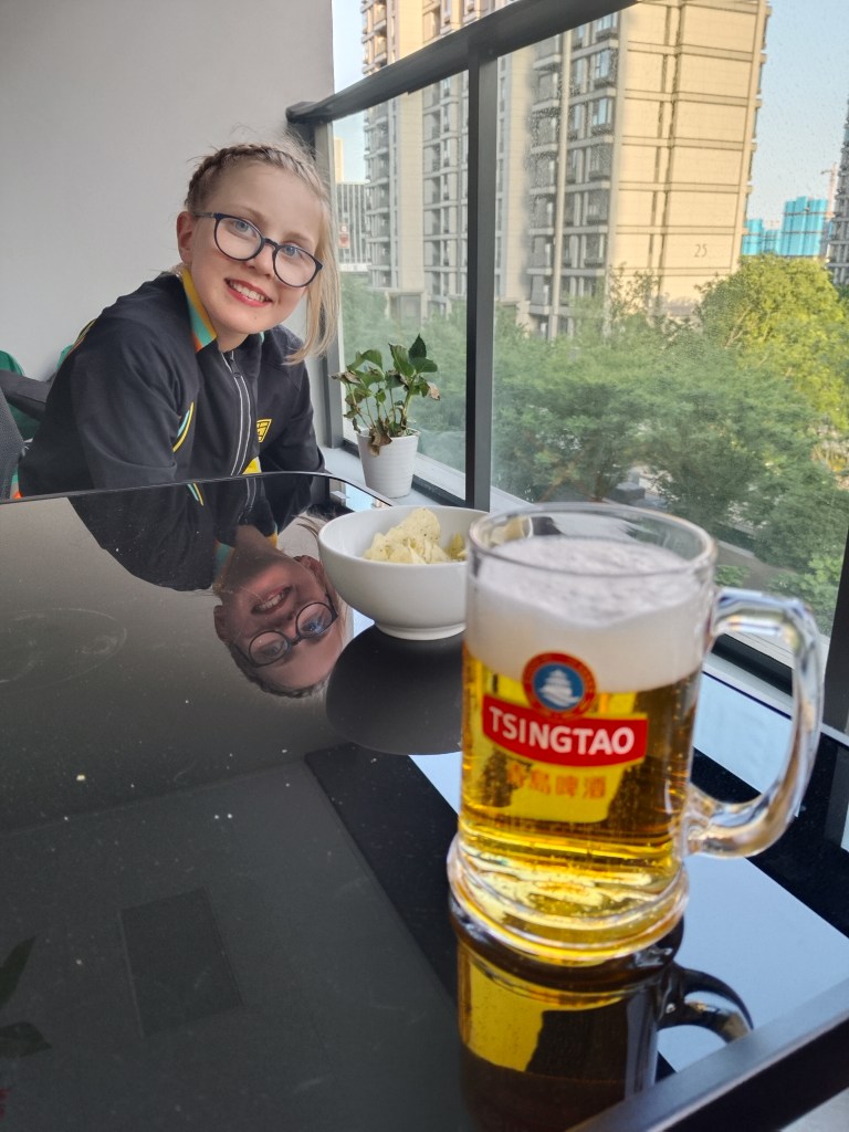 Efter en hemresa i nybytta men ändå småfuktiga kläder var det skönt med en glass och svalkande fredagsdryck på balkongen.