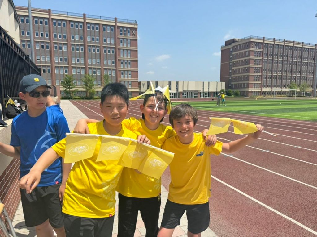 Syskon och undervisande föräldrar tillhör samma elevhem, och tanken är att det ska vara ganska jämnt fördelat i respektive klass. Ingrid och Olof har blivit placerade i Li house, så taggade till tänderna gick vi till bussen på fredagsmorgonen klädda i gult.