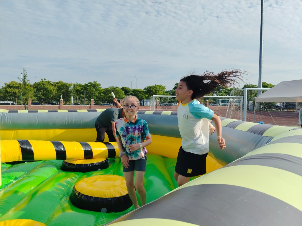Uppställt som en marknad på fotbolls och rugbyplanen gick vi runt och spenderade de “coins” som vi fått växla till oss.
