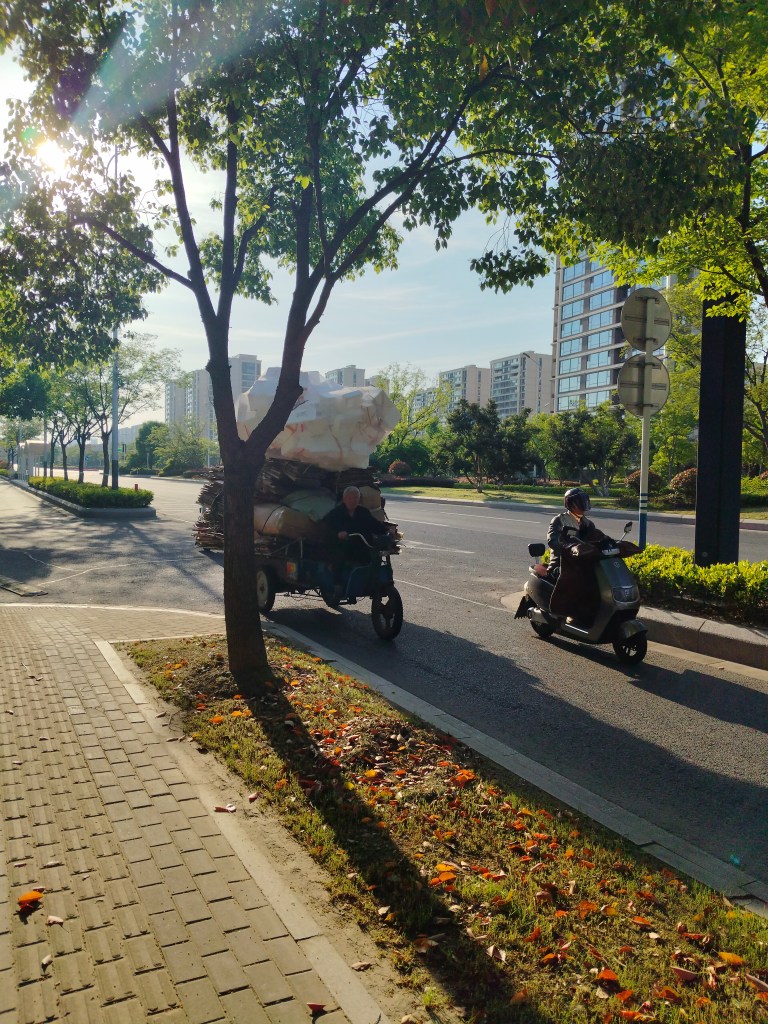 Trafiken i Kina har jag skrivit lite om förut, mååånga E-bikes susar fram, en del förare har hjälm men andra inte.