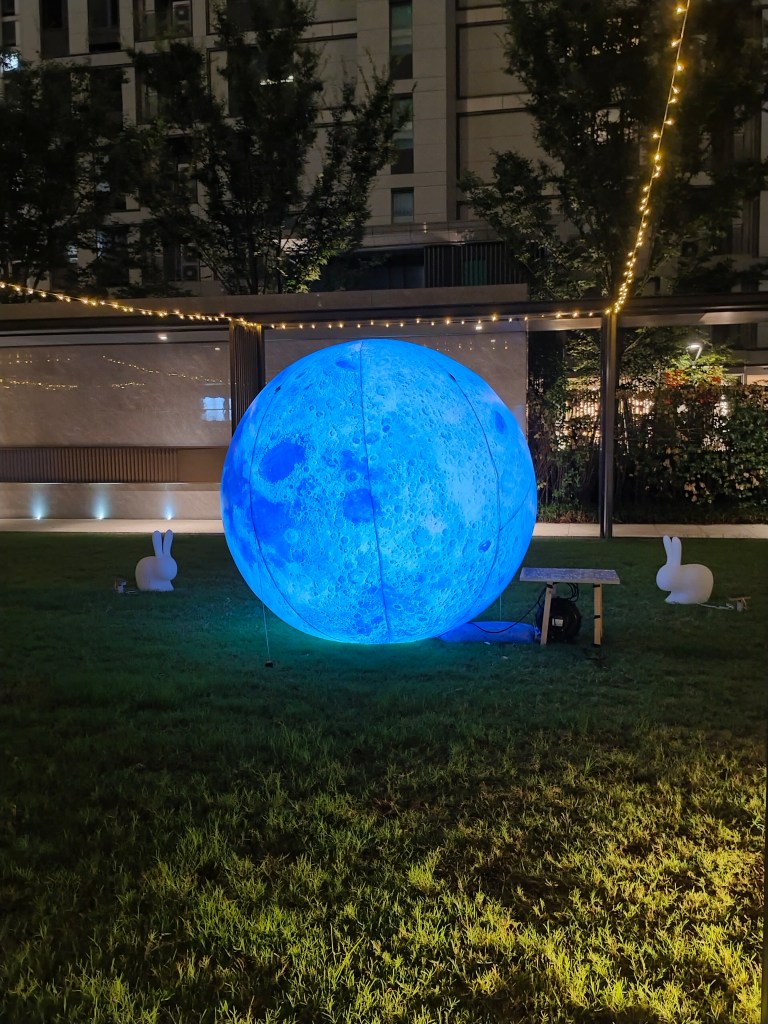 På samma plats där månen och kaninerna stod finns det nu en tårta..? Prydd med siffran 75 eftersom att det var 75 år sedan Mao tillträdde 1e oktober 1949.