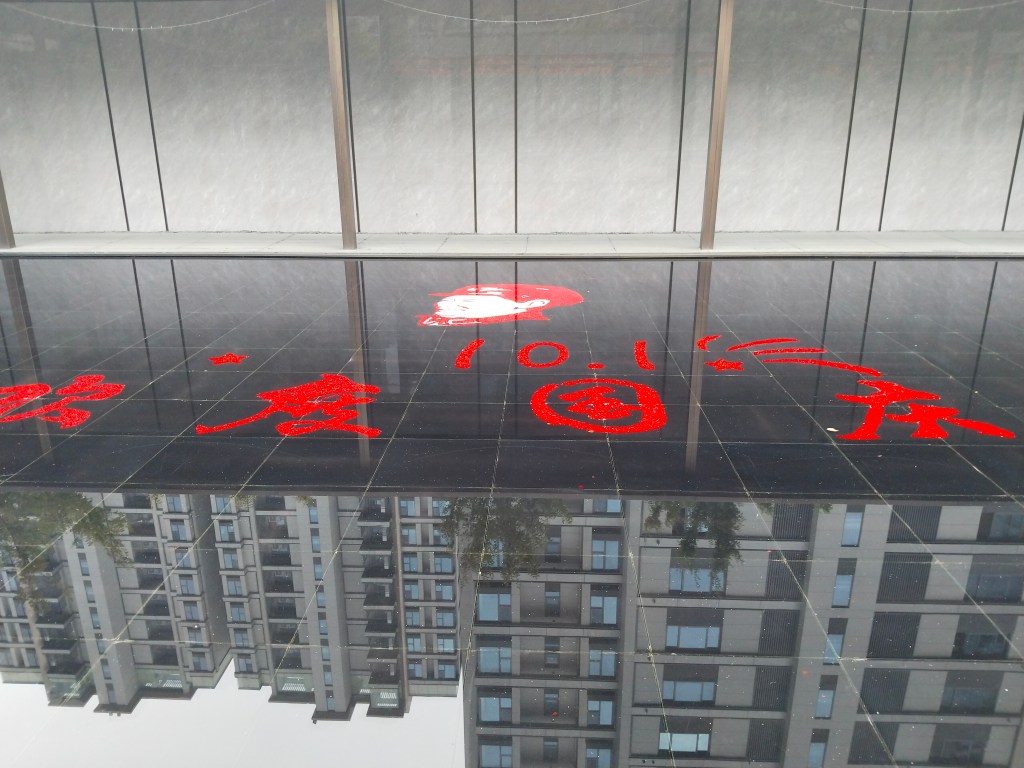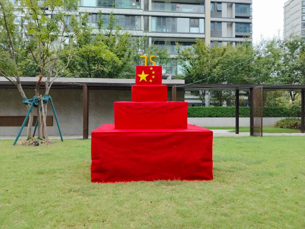 Området smyckas i dagarna om, Från månfestival 15-17 september ska det nu pyntas för nationaldagsfirande i 1-7 oktober. Det sparas inte på krutet, och eftersom att det blir lediga dagar under vardagar kompenseras detta med en arbetsdag på söndag.