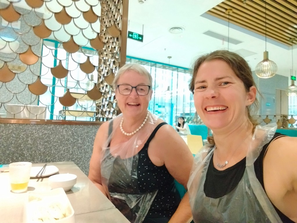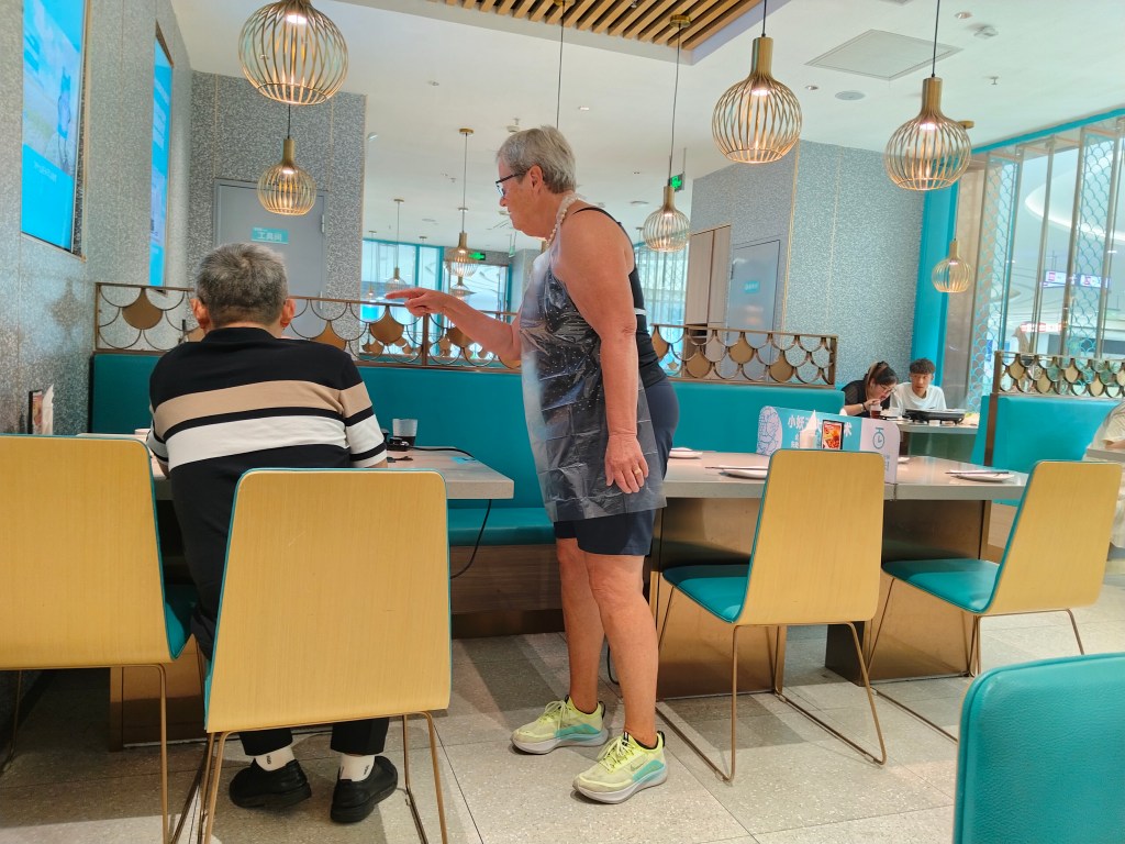 IngaLena valde smarta vägen och kommunicerade med bordsgrannarna om hur maten bäst skulle tillredas och ätas. Hennes kommunikationsstrategi ska jag ta till mig, när kineserna hon försöker prata med inte förstår engelska kan hon ju lika gärna fortsätta på svenska. Det funkar ju typ lika bra med gester till.