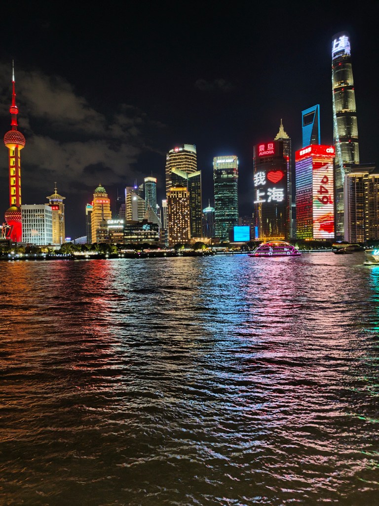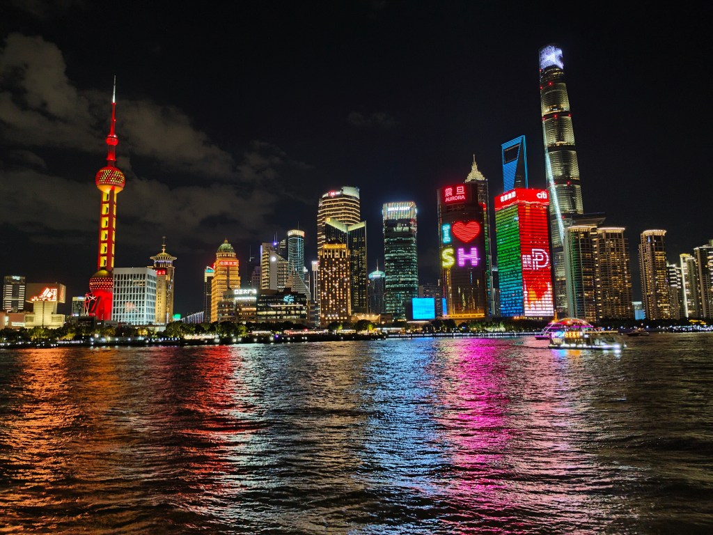 Vi hittade i alla fall tillslut en restaurang med i 13åringens ögon god mat och galna knivar. Sedan transporterade vi oss mot Shanghais hjärta, utsikten över the Bund, Shanghais kända skyline. Vi besökte den i mars i år på dagtid. Men det var ju en helt annan upplevelse när solen gått ner och ljusspelen tänts.