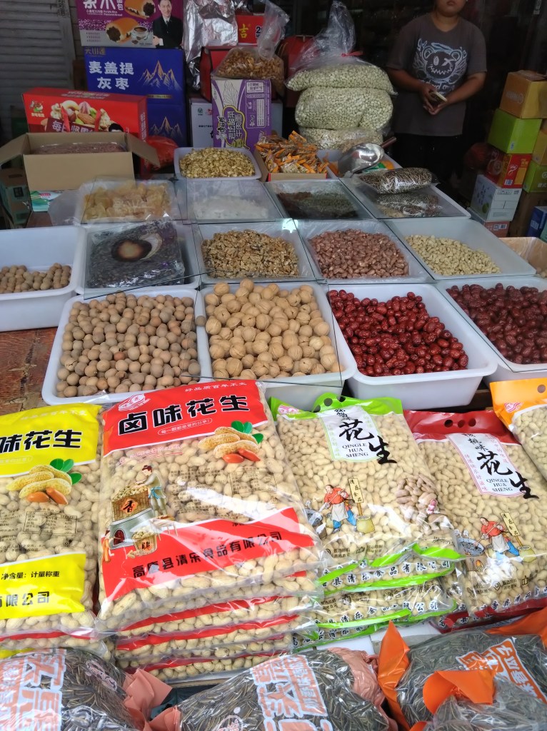 Tillbaka i Nantong tog vi en tur till den stora marknaden för att visa upp en annan sida av Nantong. Lite stökigt och ruffigt och härligt rörigt. Nötter, choklad, grönsaker och frukt blev skörden vi fick med oss hem.