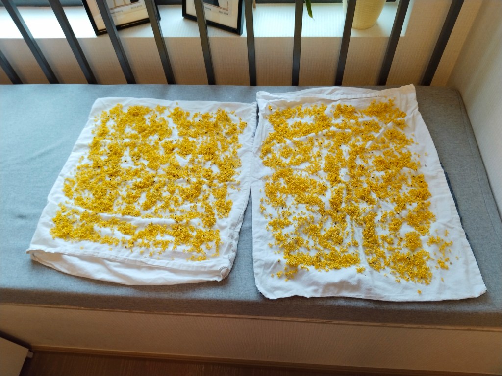 Osmanthusträden har blommat och doftat och jag har agerat som kineser, plockat och torkat blommorna. Dessa kan tydligen användas i te, honung, bröd med mera, ge mig gärna era bästa förslag.