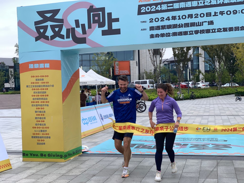 Det var ju inte tävling, och det var inte så många personer som sprang, men kul ändå att vi sprang över mållinjen först.
