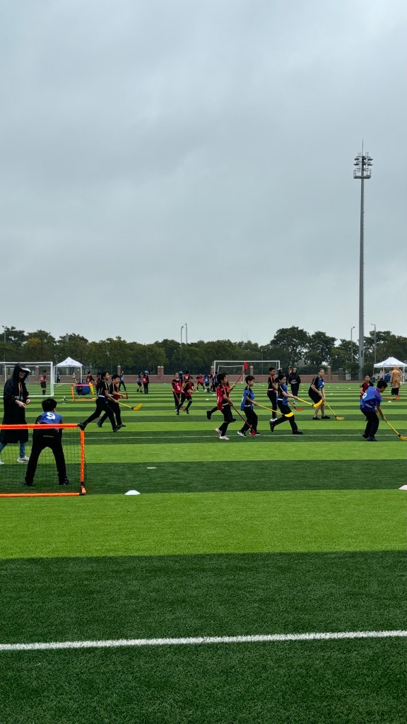 Sporterna fotboll, volleyboll och tag rugby kände vi igen, men benchball, frisbee och innebandy på konstgräs under täcknamnet “hockey” var nya för oss.