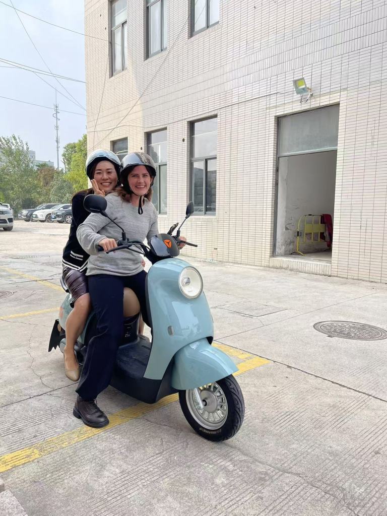 Jenny hade aldrig åkt Ebike, så hon tyckte det var väldigt kul att jag hämtade upp henne och körde till en liten restaurang. Vi käkade nudelsoppa med sojamarinerad gurka och inälvor av ko till. Jajemen, tömd och snedskuren tarm som lagats till och sedan marinerats kall. Inte helt tokigt faktiskt.