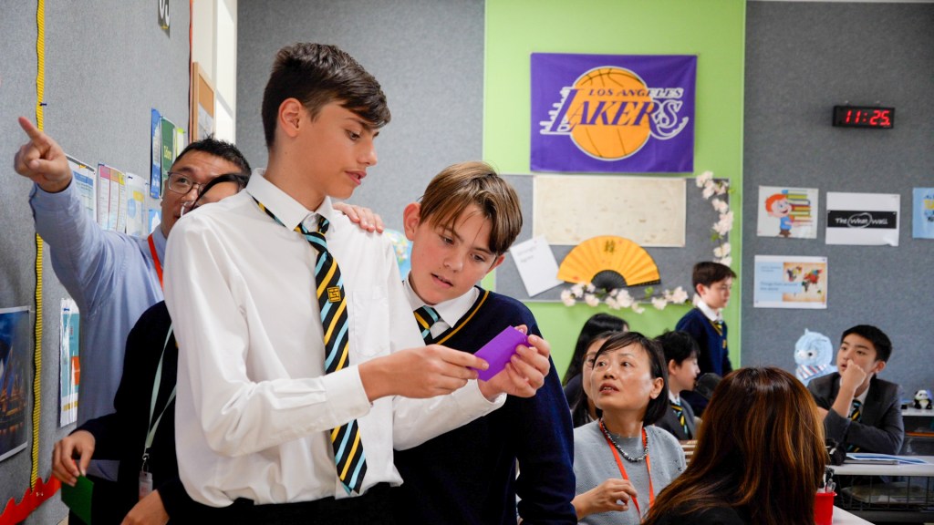 När det är två minuter kvar av lektionen ljuder en liten melodislinga så att lärare och elever kan avsluta tillsammans, timplanen tillåter ett helt annat schema än hemma i sverige…
