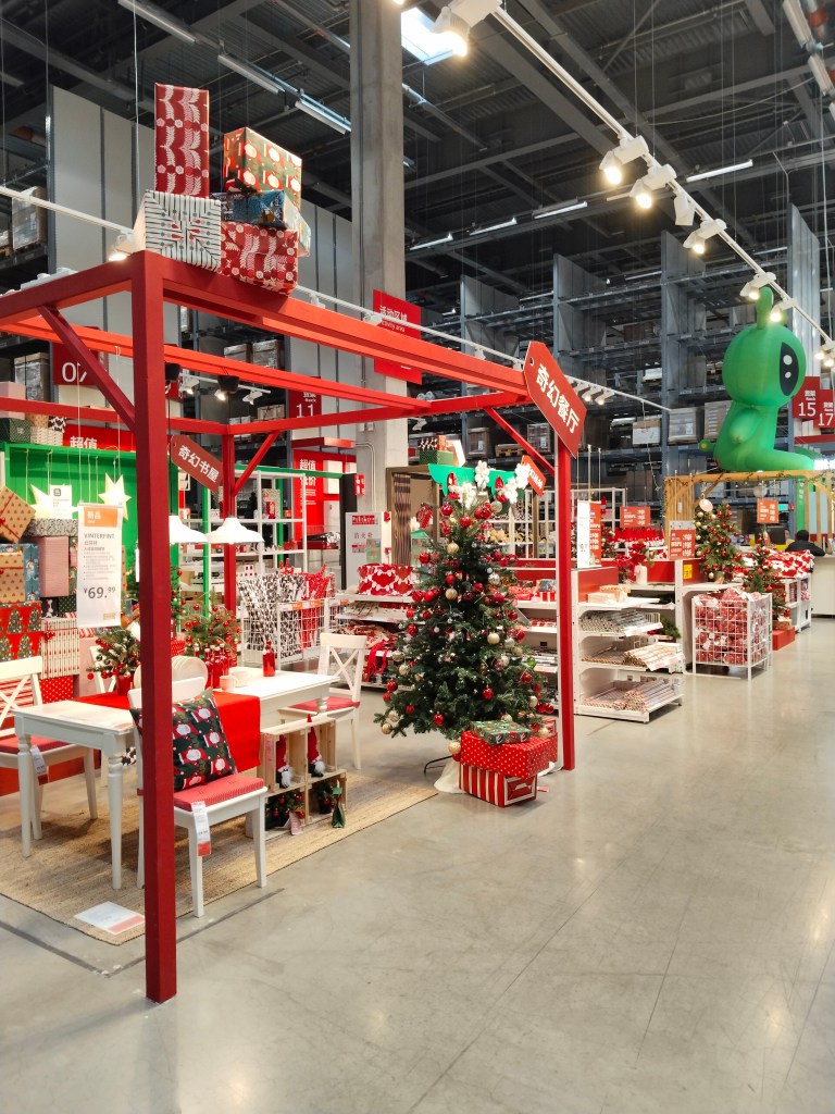 I veckan var jag på IKEA med min kompis Linda. Det var en väldigt liten hörna med julpynt i jämförelse med Sverige, men en stor hörna med Kinamått.