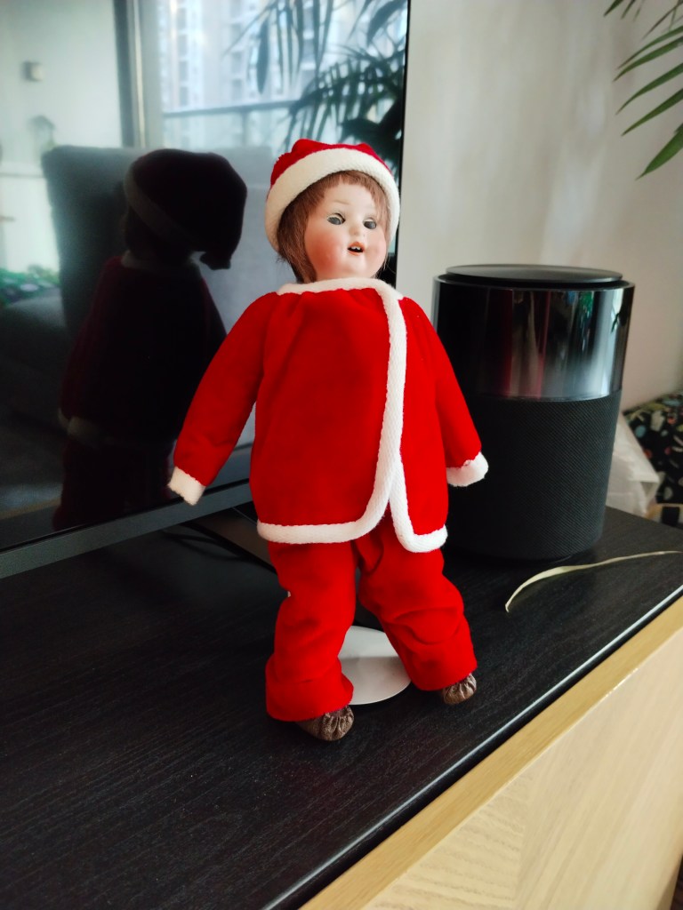 På Metro, en kinesisk affär med en del västerländska varor fanns också en hörna med “julpynt”, tomtar som kommer med fallskärm..? och något drakliknande tomtegosedjur. Är glad för det julpynt jag tog med från Sverige.