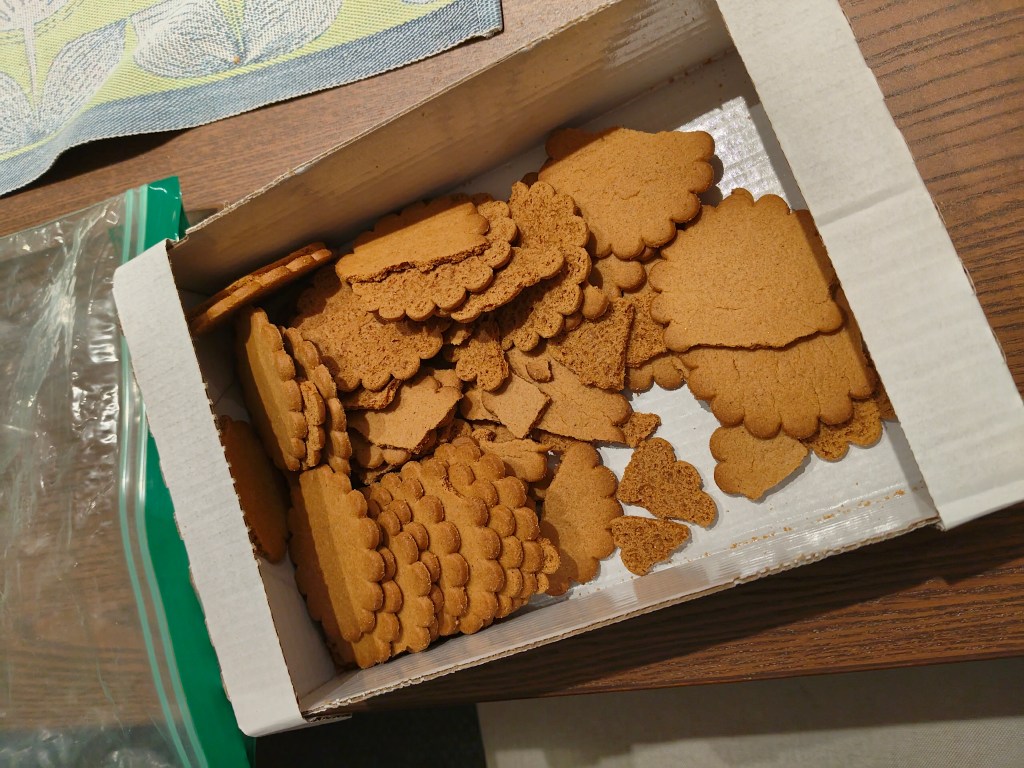 Inte ofta man skulle betala 45 spänn för en halv låda tjocka och smått trasiga pepparkakor. Men nöden har ibland ingen lag, det var ändå pepparkakor med rätt doft och okej smak. Nu har jag i alla fall motivation att lära mig hur man gör egen deg från grunden.