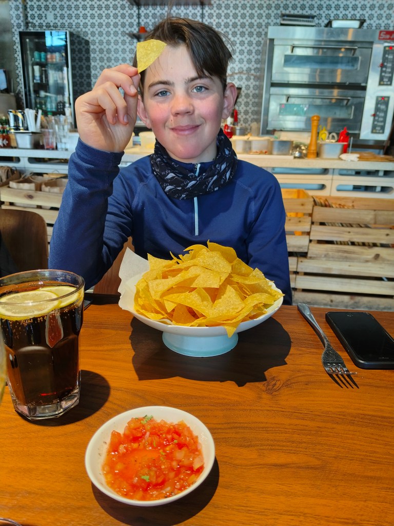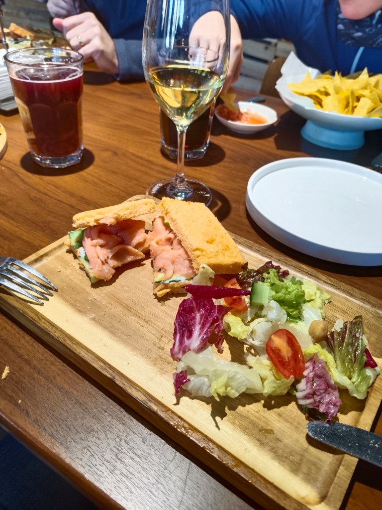 Julaftonslunchen blev precis som barnen önskade, nachos och pizza, men för oss vuxna blev det nästan som en svensk jullunch: Laxtoast!