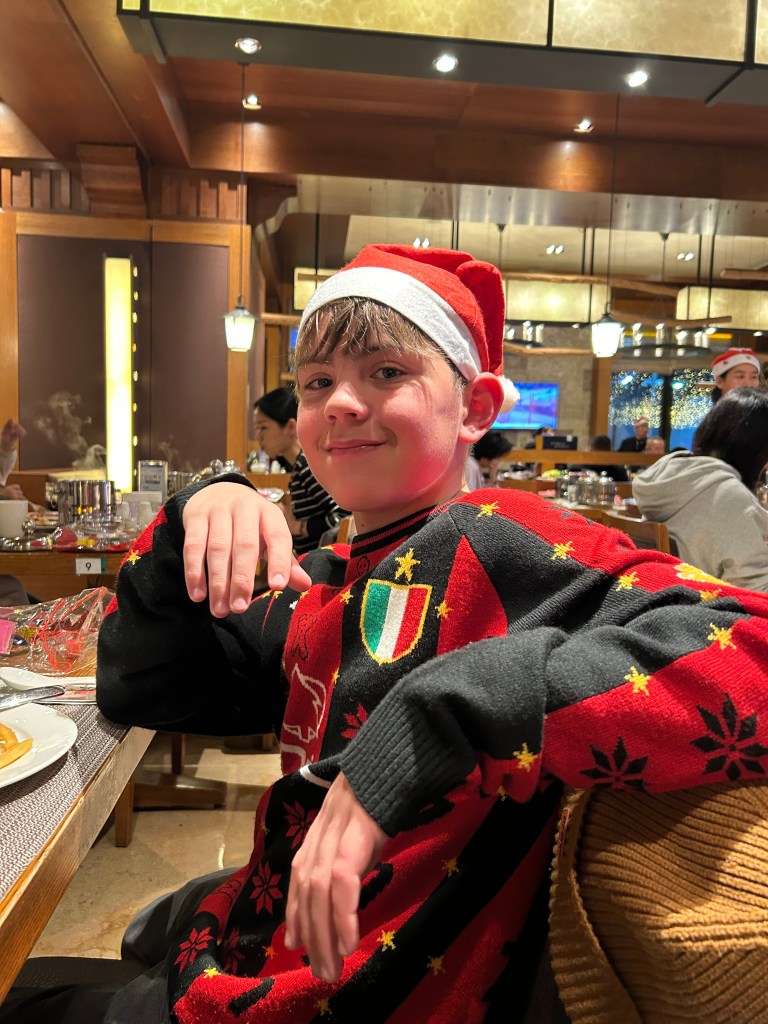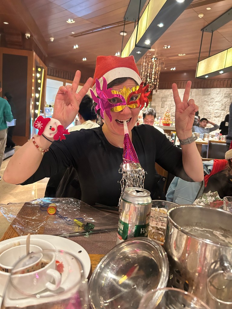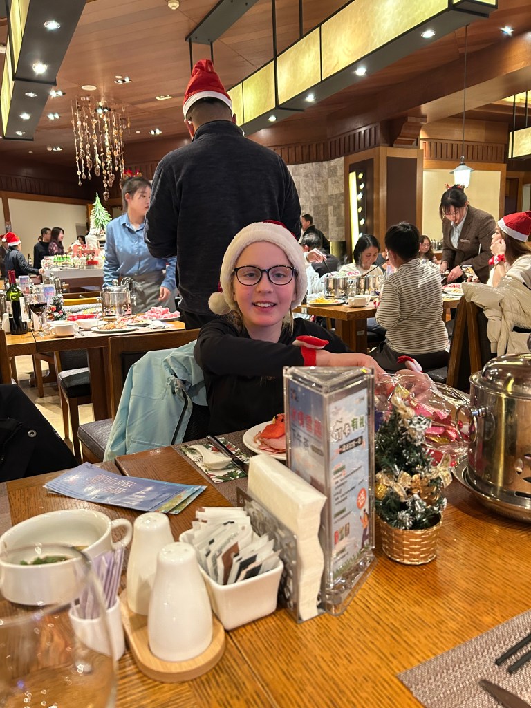 Maten var god, och något som liknade julskinka fanns faktiskt mellan kalkonen och fisken. Den mesta maten var det däremot meningen att vi skulle tillaga själva i kokande kärl på bordet, hotpots. Inte så juligt som vi är vana vid hemifrån.