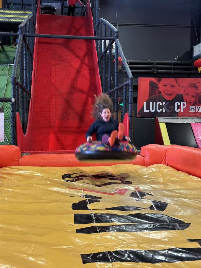 Tillsammans med två andra familjer drog vi till trampolinparken ett gäng timmar. Sex barn mellan 9 och 13 år hade skitkul och ville inte gå hem.