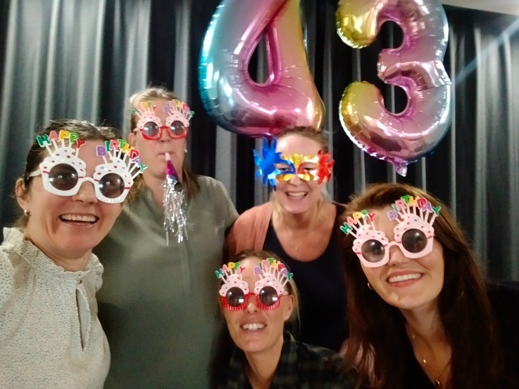 Hon blev överraskad och glad över att vi fixat godsaker och dricka för henne.