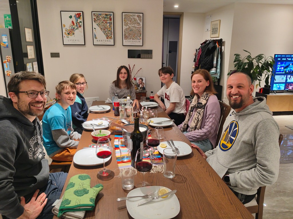 Jo vi lärde känna en familj på vår bergsvandring, och nu i helgen kom de till Nantong på besök. Kiara sov över hos oss medan resten av familjen tog hotell men kom på middag. Med rötter i Europa talas en väldigt brittisk engelska, men också lite Afrikaans, spännande!