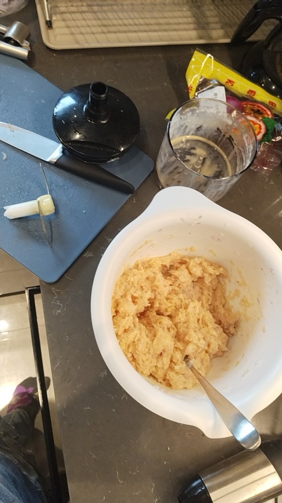 Vi har ett perfekt betalningssystem Vivian och jag. Matlådor mot pilateslektioner. Idag fick hon hemgjorda fiskbullar med potatis, kokta morötter och passionsfruktscoleslaw. Riktigt nöjd själv med fiskbullarna jag fick till med fisk, lök, squash, vitlök, majsmjöl, ägg och kryddor.