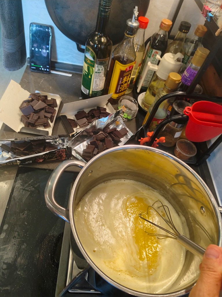 Ingrids klass med tre elever från Sverige och en brittisk lärare som haft praktik i Linköping fick Sverige på sin lott, men här blev inte hela klassen ombedda att baka, utan det gjorde tre svenska mammor. Kladdkakan gjord på mörk choklad blev en stor favorit bland eleverna och lärarna som gick runt. Och den är ju god, inget snack om saken.