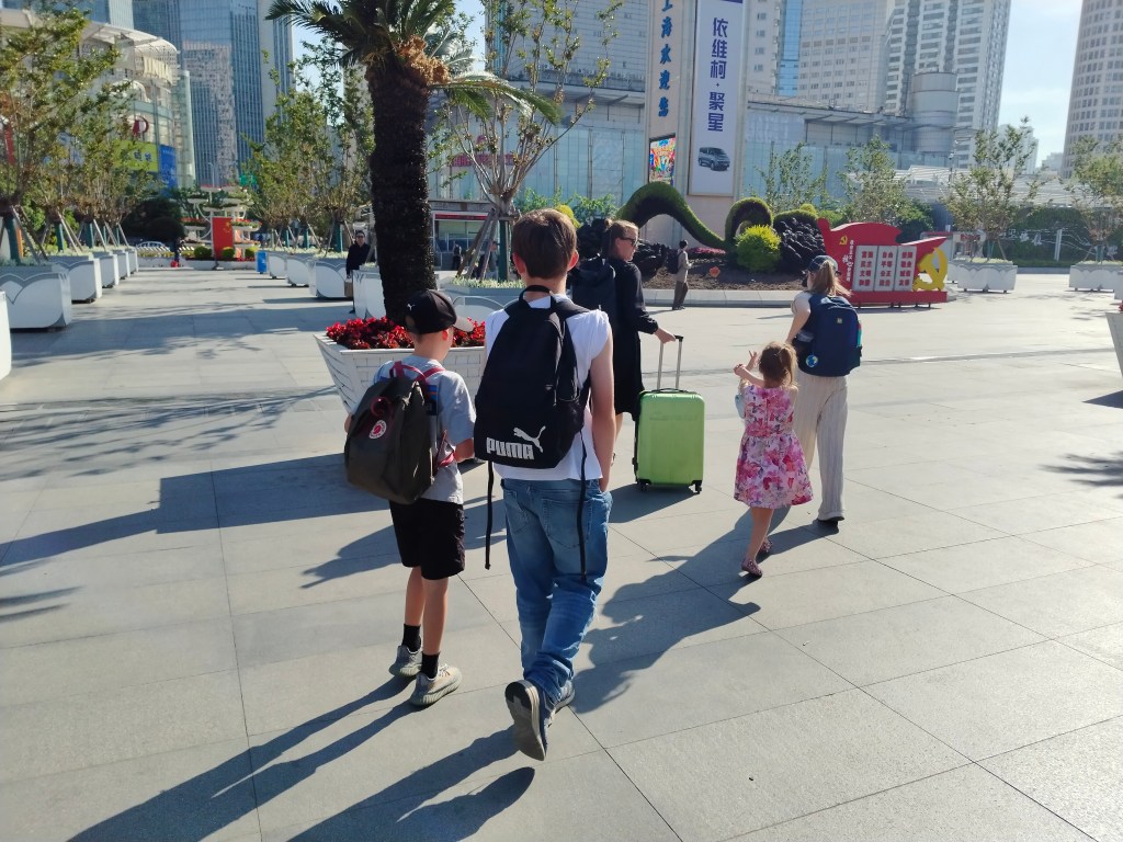 Under vår lediga fredag hoppade vi på tåget till Shanghai tillsammans med barn och mamma Costanzo. Eftersom att jag bara kunde köpa 5 biljetter i taget fick jag en plats två vagnar bort. Men Olivia är inte så stor så vi fyra delade på tre platser och min riktiga plats förblev tom..