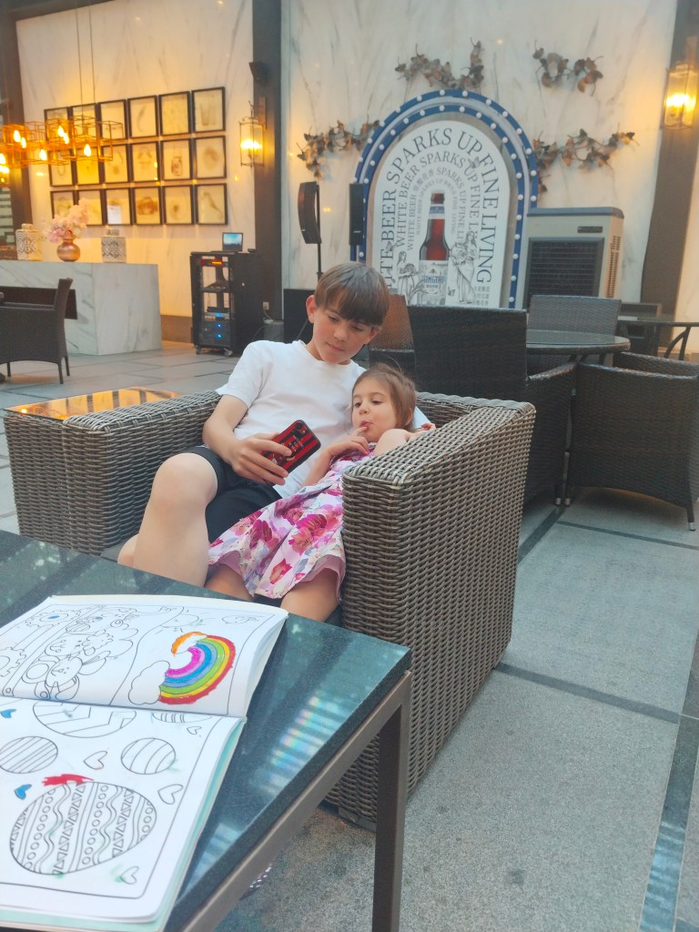 Olof letade upp ett glasscafe i sin telefon och skickade kartposition till Linda som beställde taxi dit. Så smidigt med stora kompetenta barn i en av världens största städer.
