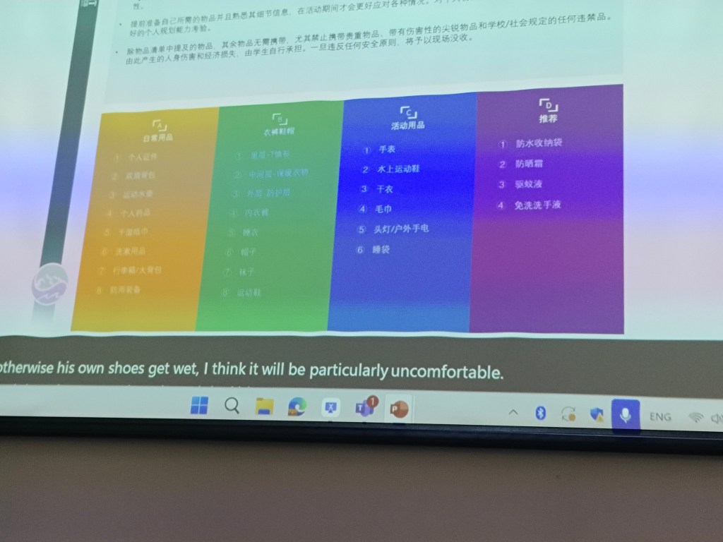 Eftersom att de kinesiska föräldrarna ofta är sämre på engelska än jag är på kinesiska var informationsmötet för Olofs klass på kinesiska med en simultanöversättning på engelska för mig. Meningsbyggnaden i engelska och mandarin skiljer sig däremot väldigt mycket, så det är otroligt svårt att få ut något vettigt av texten som skrivs med bisatser mitt i meningarna. Översättningen är också tidvis lite tvivelaktig, budskapet ett tag var att Olof skulle åka till tyskland och campa en natt 😂