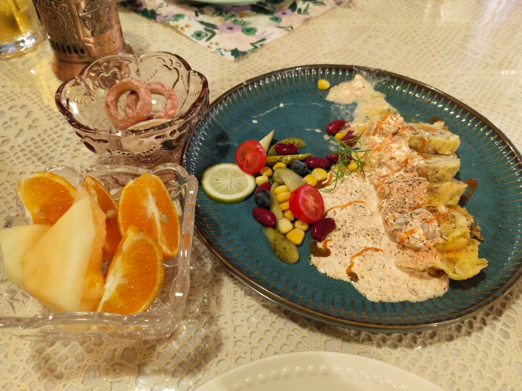 Den andra kvällen provade vi en lite västerländskt inspirerad restaurang, Miloz. Sist vi åt där var det nordafrikanskt, men nu åt vi laxsashimi, tomatsallad, bröd och kyckling.