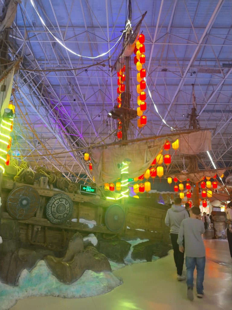 Nu vet vi att vikingaskepp egentligen var dekorerade med kinesiska lyktor 😂, för vikingar var också ett tema i denna park.