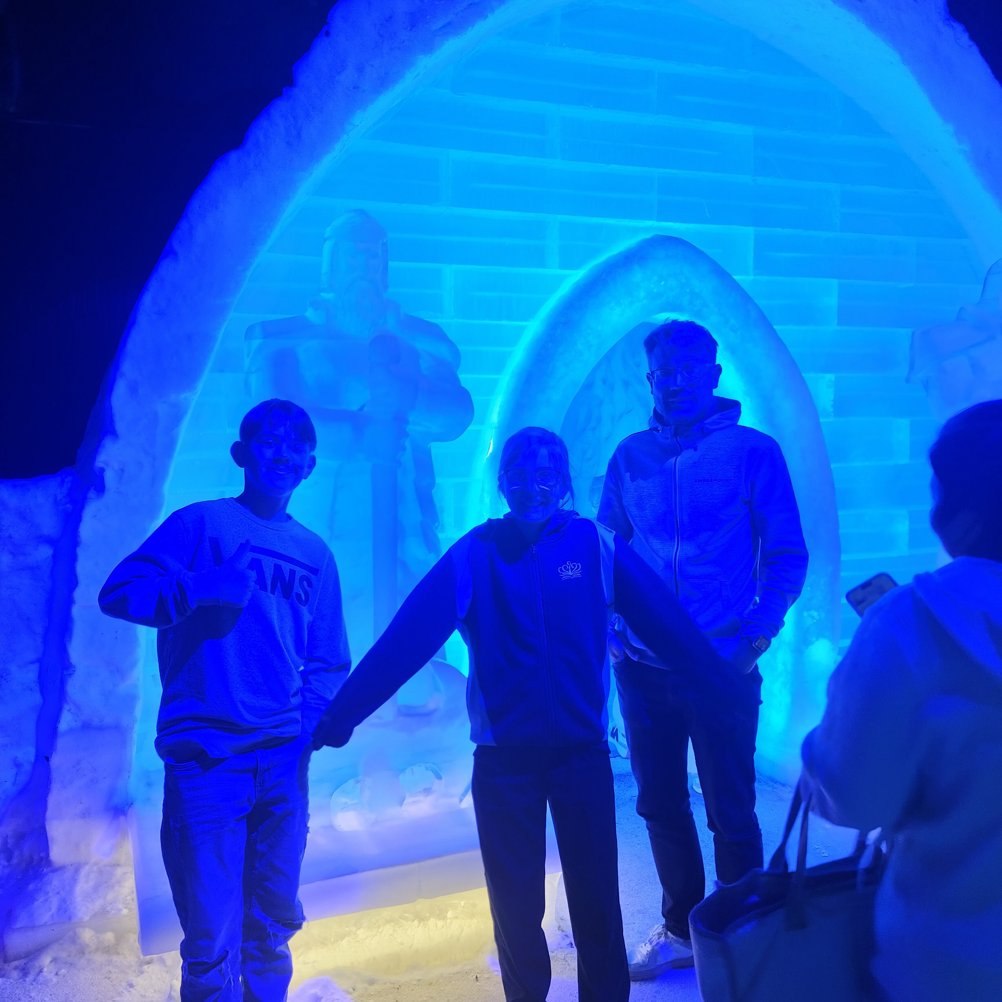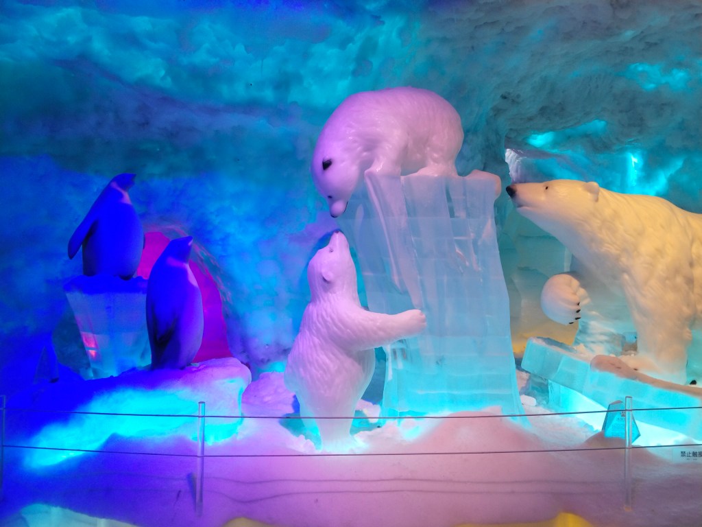 De verkade inte riktigt ha koll på att isbjörnar och pingviner finns på olika ställen.. I upplevelserummet med snö och is varnade de många gånger för kylan och ville att vi skulle hyra dunjackor. När jag sade att vi var svenskar skrattade de dock och släppte in oss.