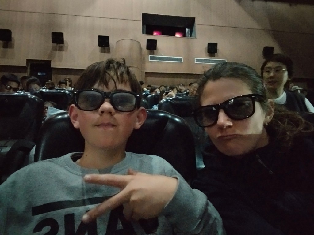 I en kupol fick vi sitta/ligga på madrasser på golvet medan vi åkte i havsdjupen bland fiskar och förhistoriska havsdjur. Med 3Dglasögon på fick vi i en anna lokal uppleva en 5D-föreställning, detta innebar scener ur en tecknad film på kinesiska. Detta medan våra stolar gungade till ibland och det blåstes skum med en väldigt kall vind så att det blev lite snö som virvlade in på oss.
