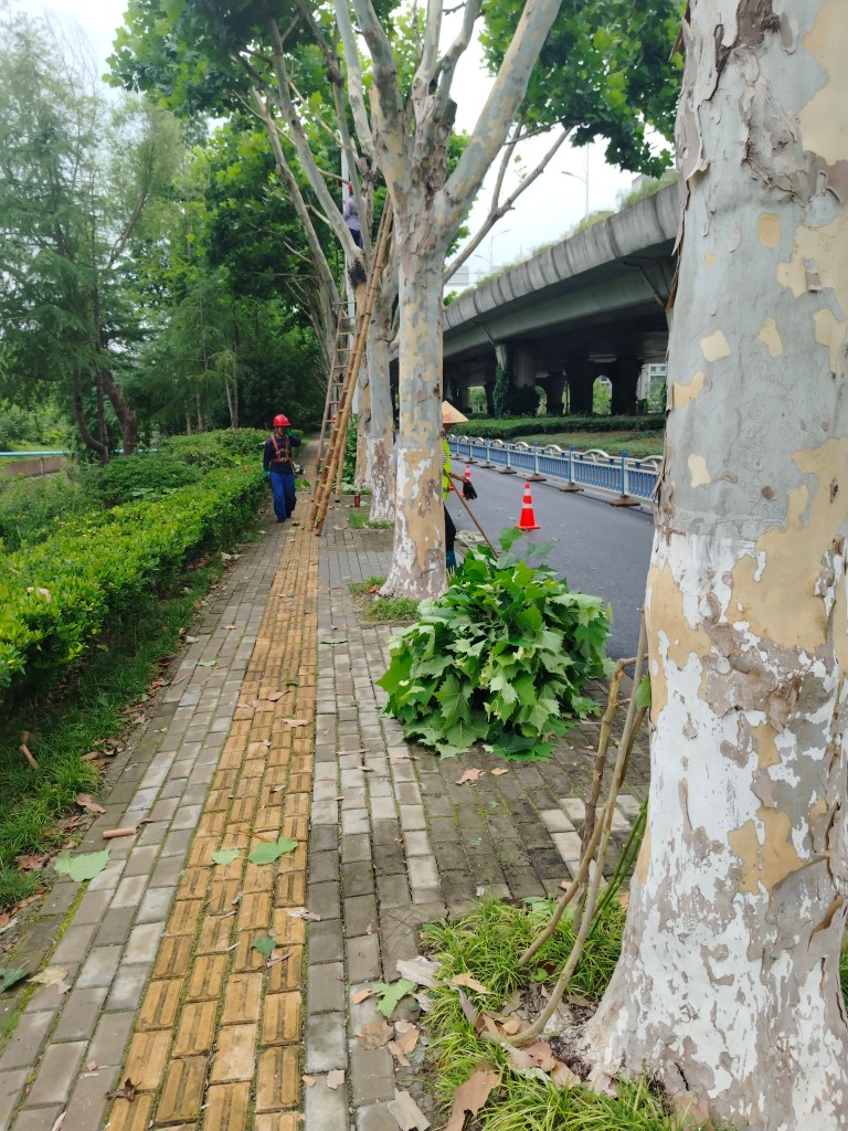 Som tur var vandrade jag på fredagen in i ett trädfällarlag som beskar platanerna längs gatan. De tyckte att det var väldigt spännande när jag bad om deras skräp, visade bilder på midsommarstång och sade att vi ska ha en svensk högtid.
