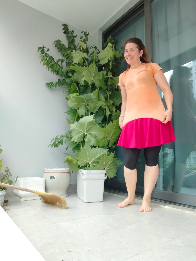Eftersom att det skulle dröja två timmar mellan färdigställandet och nedbärandet till dansen ville vi lämna stången utomhus orörd. Jag fick snilleblixten att stoppa i kinesiska flaggor också och inte bara svenska så att de skulle tycka att den var fin och inte klaga/slänga den