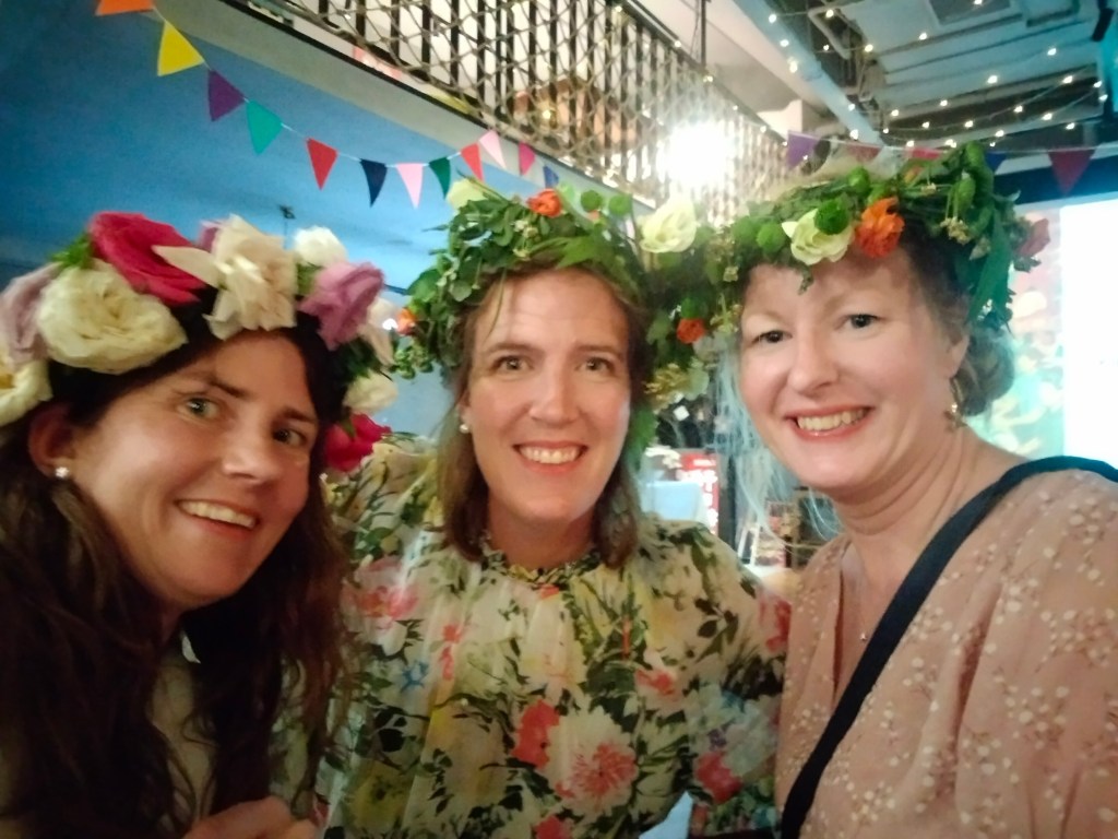 Efter dansen fortsatte vi till PLS för middg quiz och fest. Inte som en svensk traditionell midsommar, men ändå ganska likt med snapsvisor, midsommarkransar och Absolut.