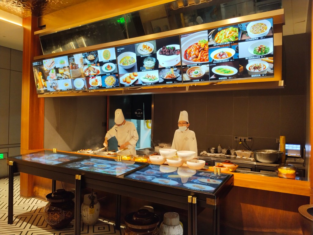 Vid det förra besöket var utedelen stängd eftersom att det var för kallt utomhus, bara 25 grader… Så nu med 35 grader i luften den 4e juli då även kineserna datumvis bedömer att det är sommar såg vi fram emot att sitta i skuggpoolen och njuta.